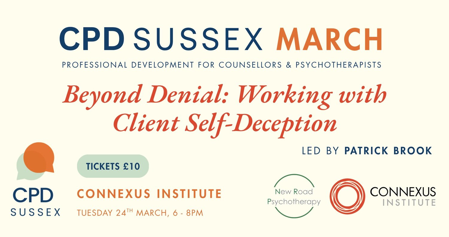 Born from a dynamic partnership between Connexus Institute and New Road Psychotherapy, CPD Sussex offers low-cost Continuous Professional Development events created specifically for counsellors and psychotherapists (in-training and qualified) committed to growth, connection, and excellence in their practice.