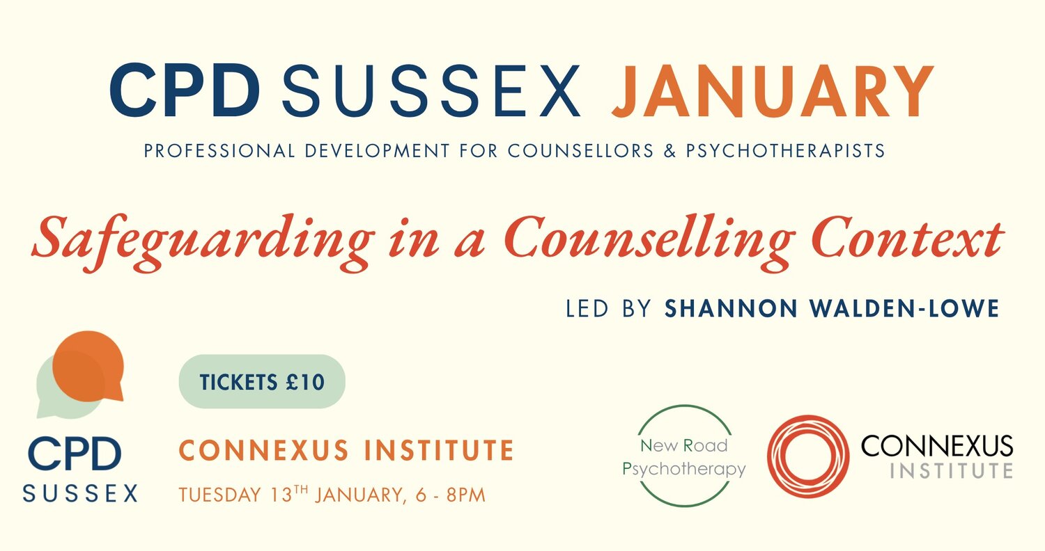 Born from a dynamic partnership between Connexus Institute and New Road Psychotherapy, CPD Sussex offers low-cost Continuous Professional Development events created specifically for counsellors and psychotherapists (in-training and qualified) committed to growth, connection, and excellence in their practice.