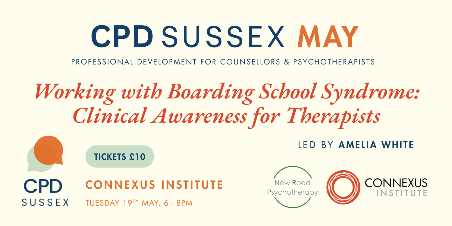 Born from a dynamic partnership between Connexus Institute and New Road Psychotherapy, CPD Sussex offers low-cost Continuous Professional Development events created specifically for counsellors and psychotherapists (in-training and qualified) committed to growth, connection, and excellence in their practice.